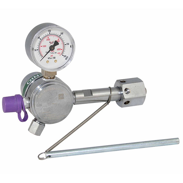 O regulador de pressão tem como função reduzir uma pressão de entrada, variável e alta, para uma pressão de saída baixa e constante. Há um regulador específico para cada gás.